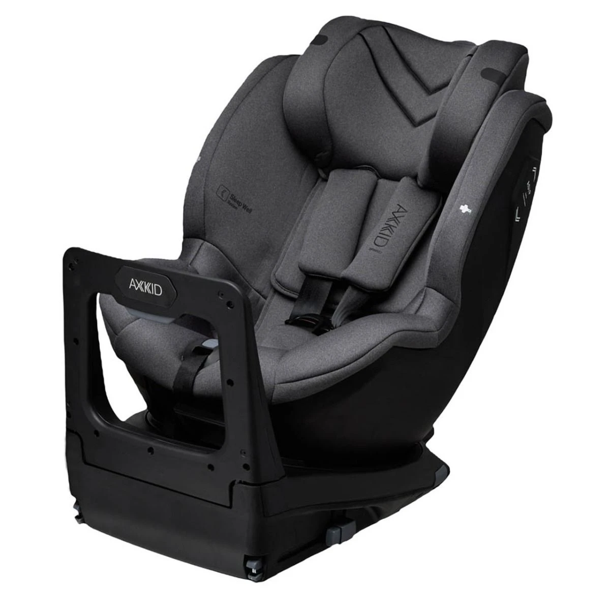 The headrest comes with 12 different steps that make it very convenient to adapt it to your child’s length and size. And with just one hand and step by step, you may higher the headrest whilst your child is growing. This, together with the Advanced Sleep Well System, makes it possible to angle the seat up to 42 degrees during the journey. This makes the Axkid Spinkid a truly great rear-facing car seat that can be used from the smallest to the largest child.
