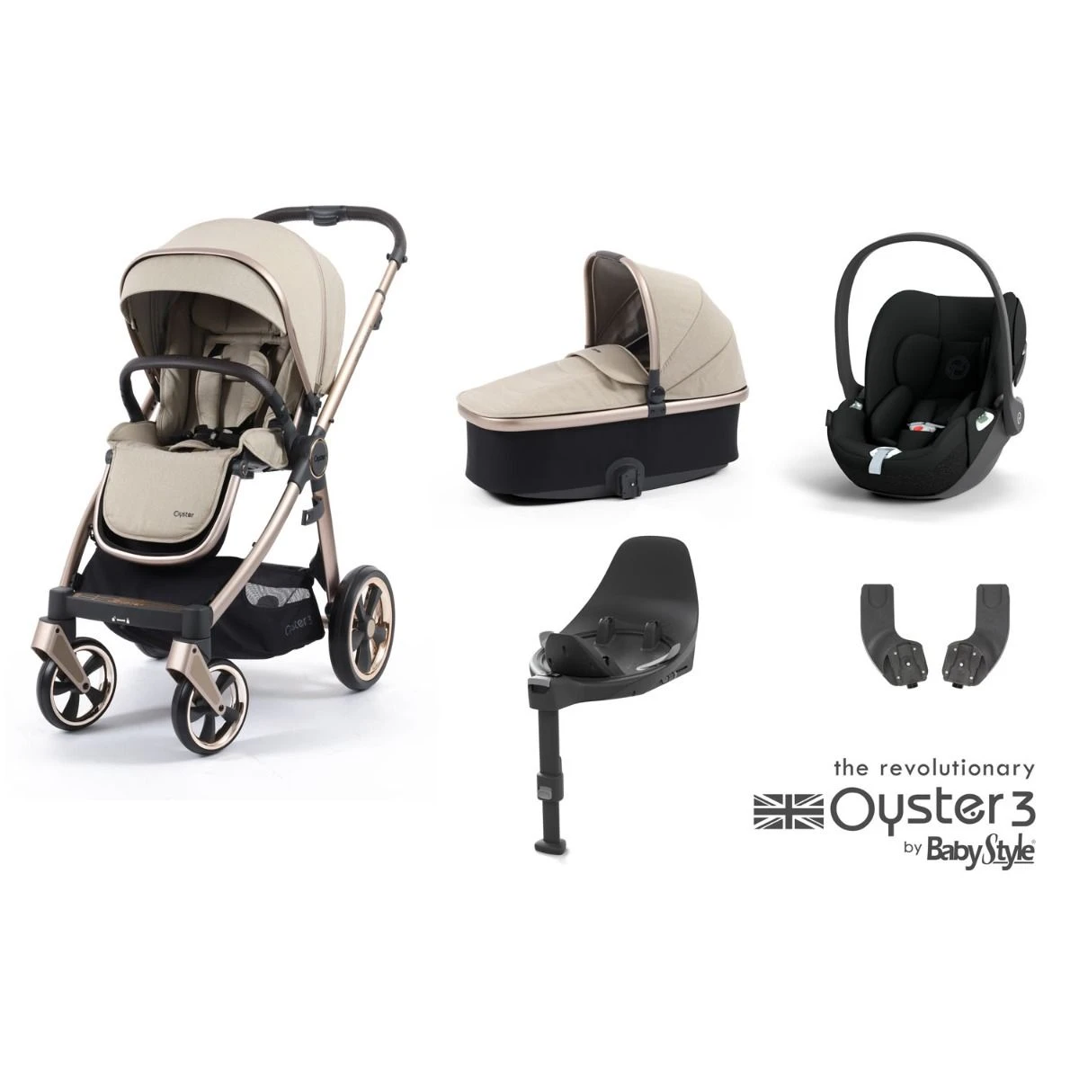 BabyStyle Oyster 3 Essential 5 Piece Cybex Cloud T Bundle – Creme Brulee