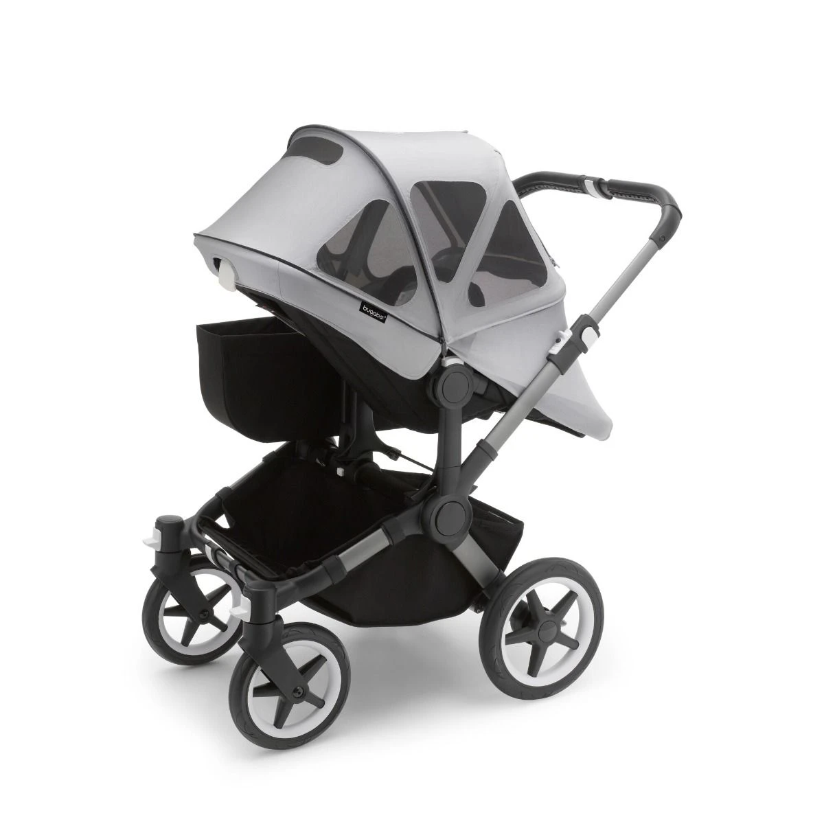 Integrated mosquito net fits over the pushchair carrycot & seat