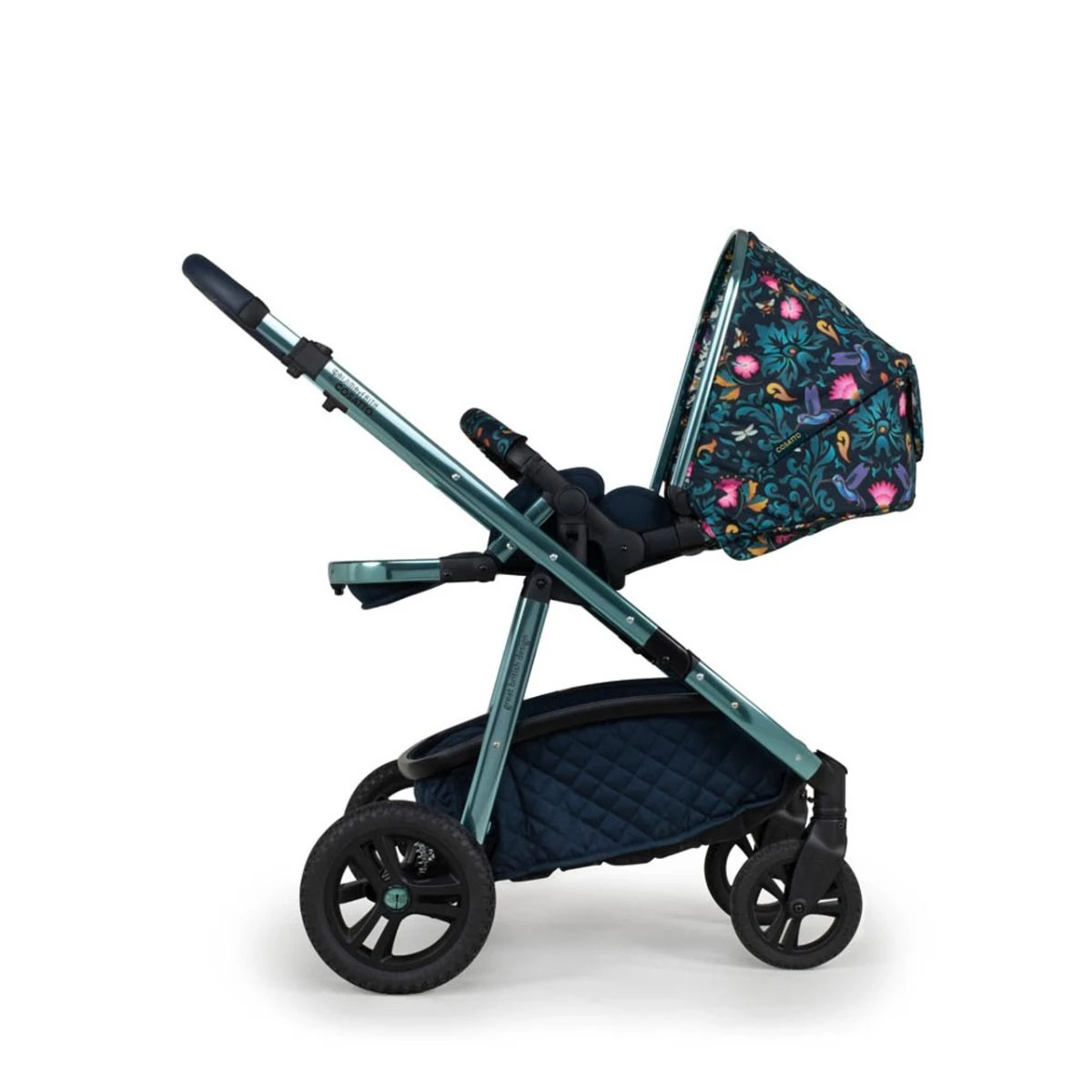 Traditionally styled pram and pushchair with modern extra bouncy chassis, spacious carrycot and large pushchair seat.