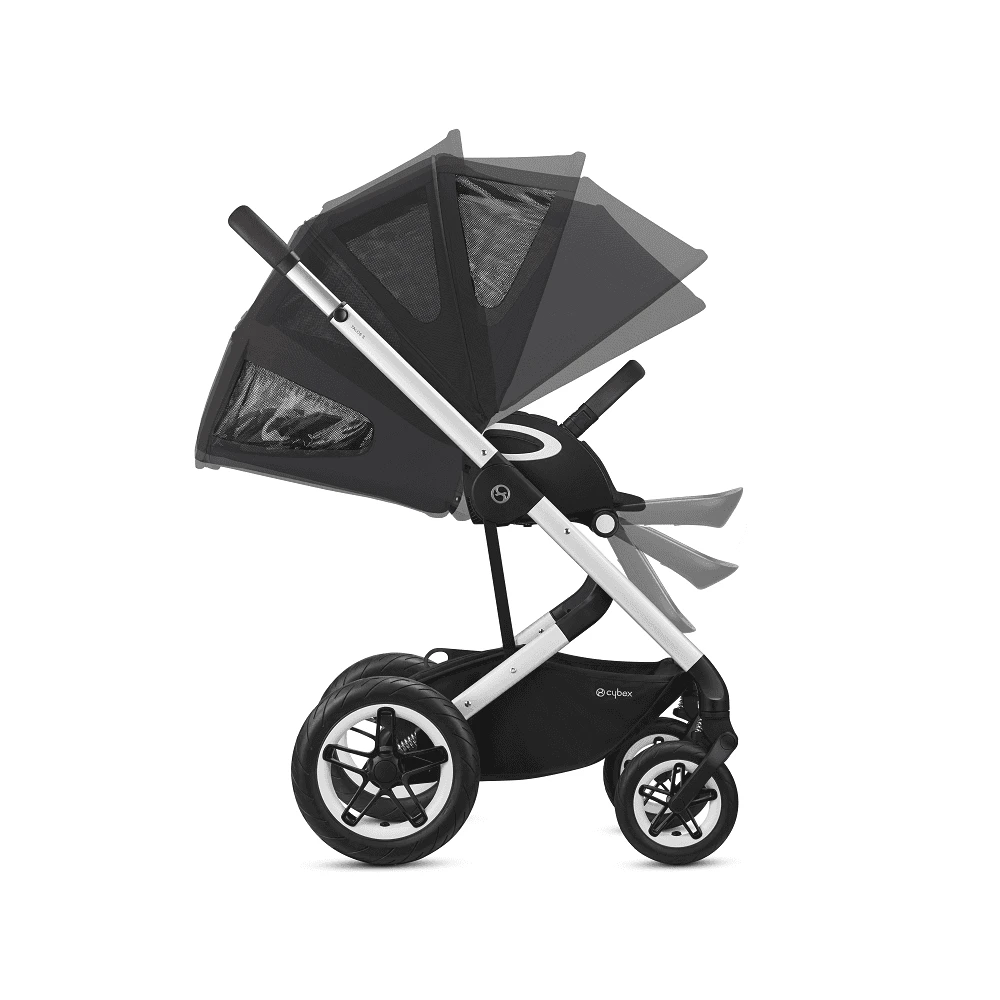 Shield your child from the elements with an extendable Supreme XXL sun canopy made of UPF50+ protective fabric, featuring a mesh window for breathability and healthy air circulation on hot days.