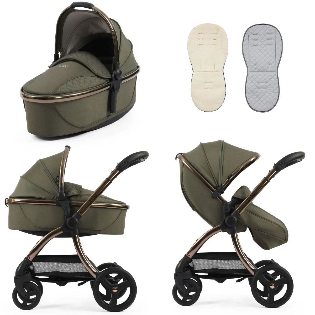 Stroller includes: Rain cover, insect net, apron and reversible fleece liner. Suitable from 6 months to 25kg (from birth with the egg3® carrycot).