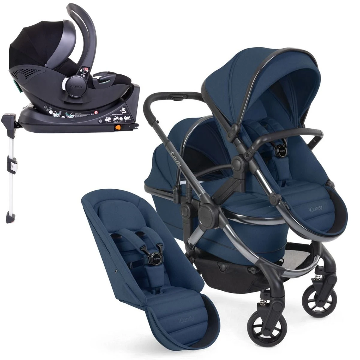 ICandy Peach 7 Double Pushchair Travel System Bundle With Cocoon ISize Car Seat & Base – Cobalt