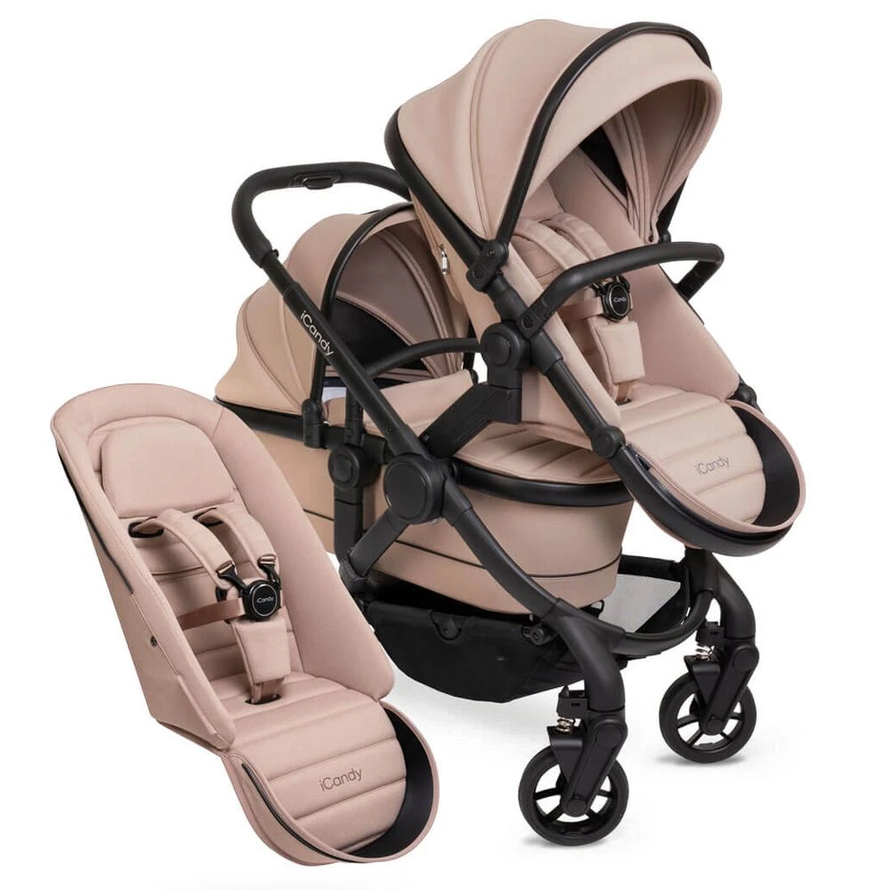 ICandy Peach 7 Double Pushchair Travel System Bundle With Cocoon ISize Car Seat & Base – Cookie