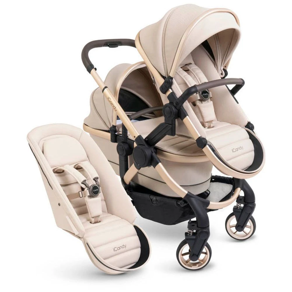 ICandy Peach 7 Double Pushchair Travel System Bundle With Cybex Cloud T ISize Car Seat & Base – Biscotti