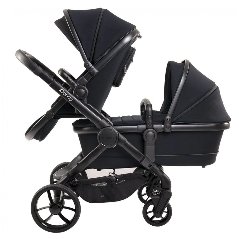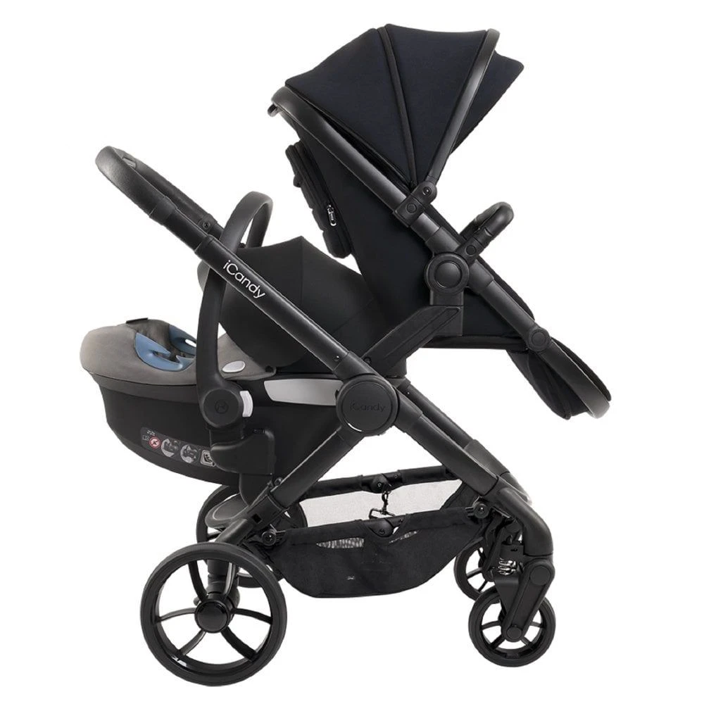 ICandy Peach 7 Double Pushchair Travel System Bundle With Cybex Cloud T ISize Car Seat & Base – Black Edition