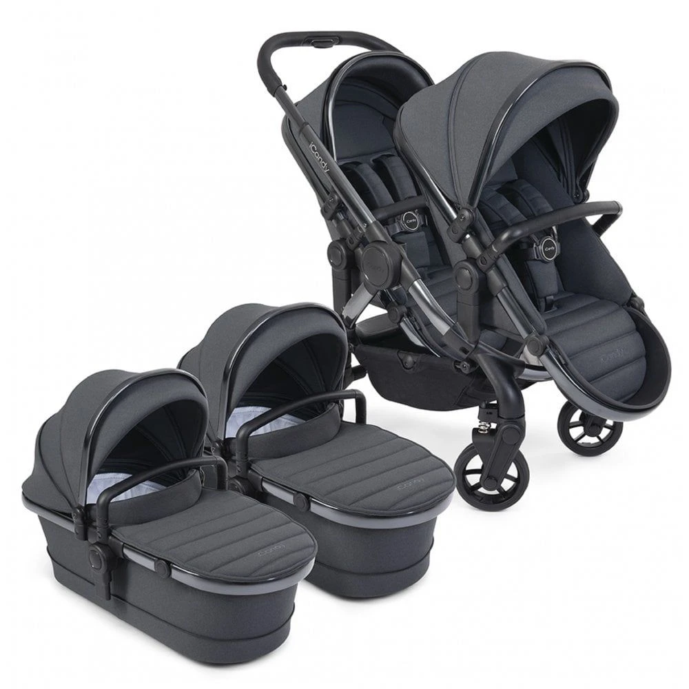 ICandy Peach 7 Twin Pushchair Travel System Bundle With Maxi-Cosi Cabriofix ISize Car Seat & Base – Dark Grey