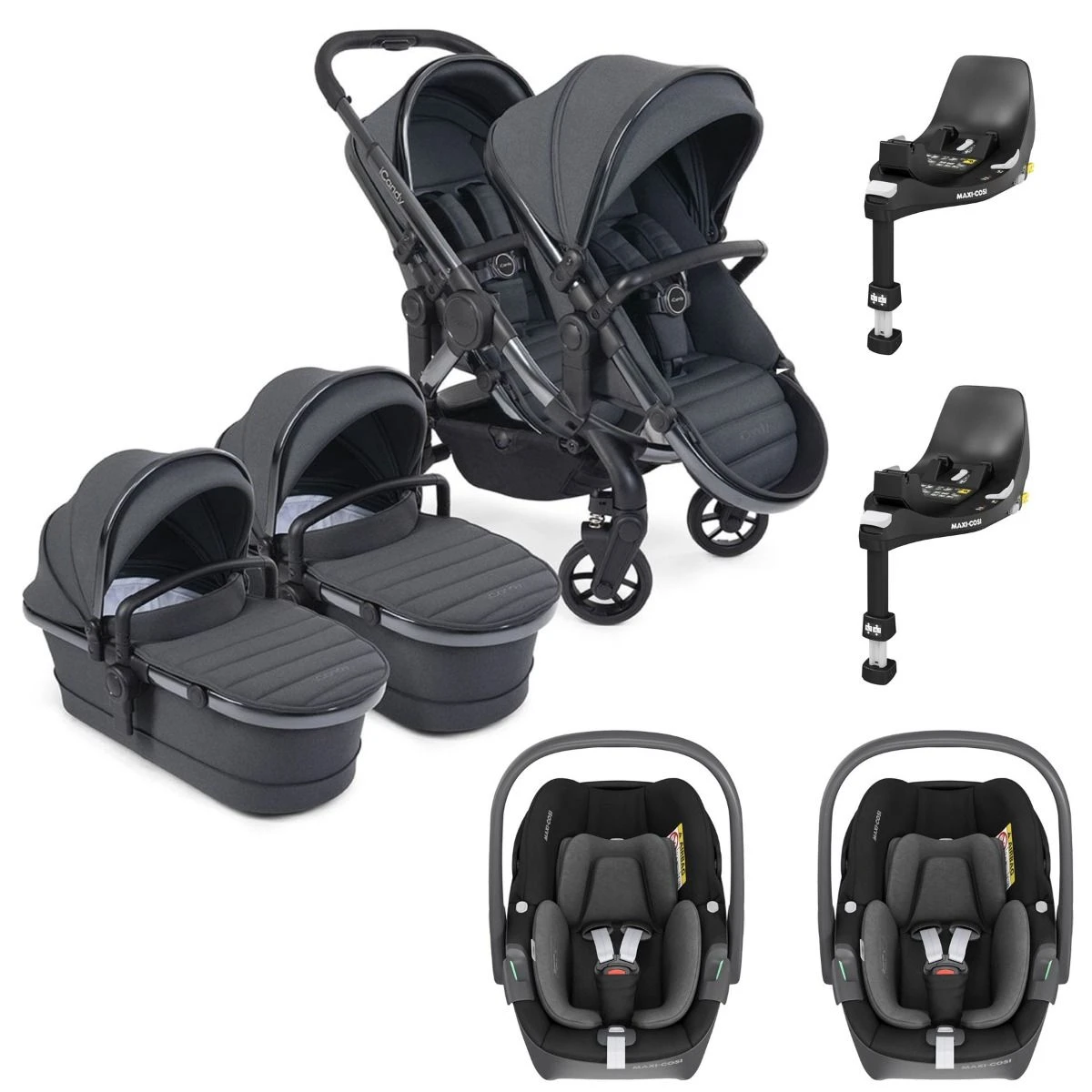 ICandy Peach 7 Twin Pushchair Travel System Bundle With Maxi-Cosi Pebble 360 ISize Car Seat & Base – Dark Grey