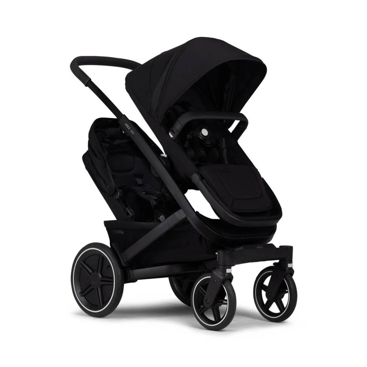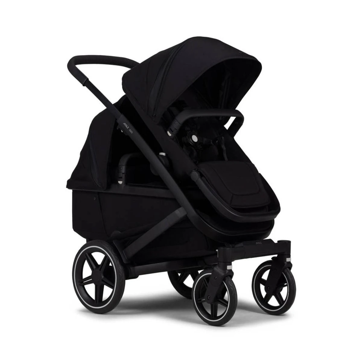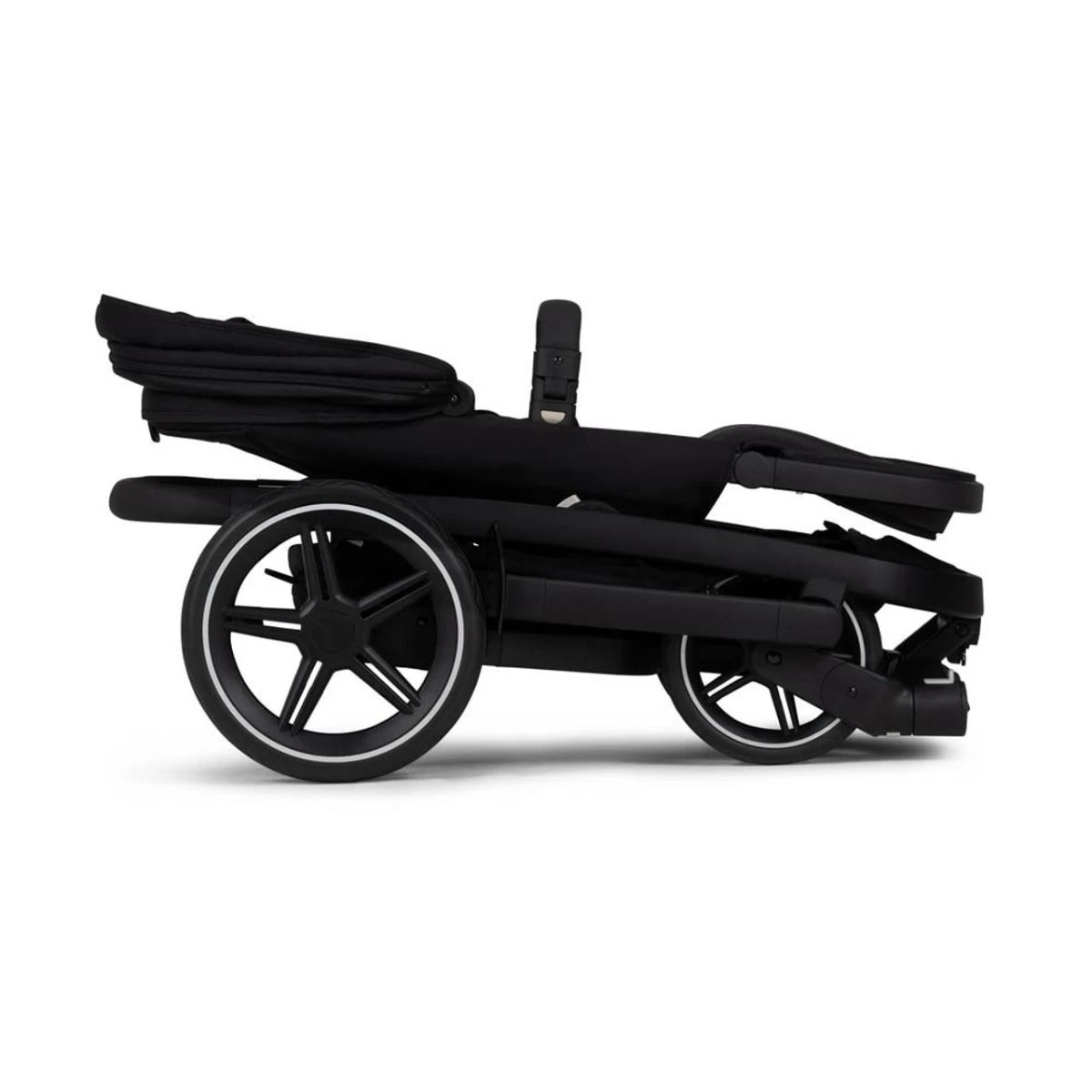 Stacking rather than side-by-side configuration makes this stroller as compact as a mono.