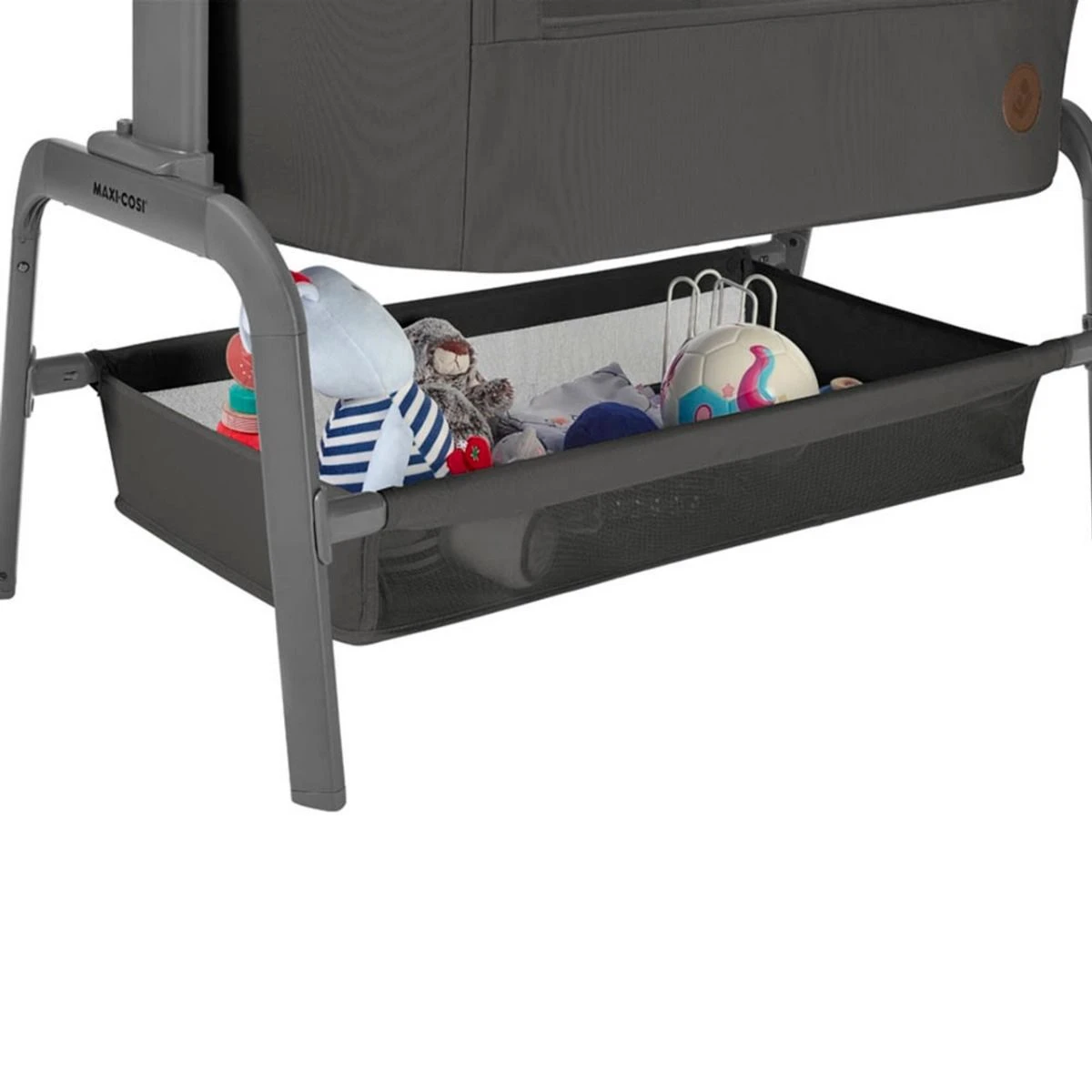 Ultra-comfortable mattress | Large storage basket | Easy slide for perfect fit | Easy to fold and carry.
