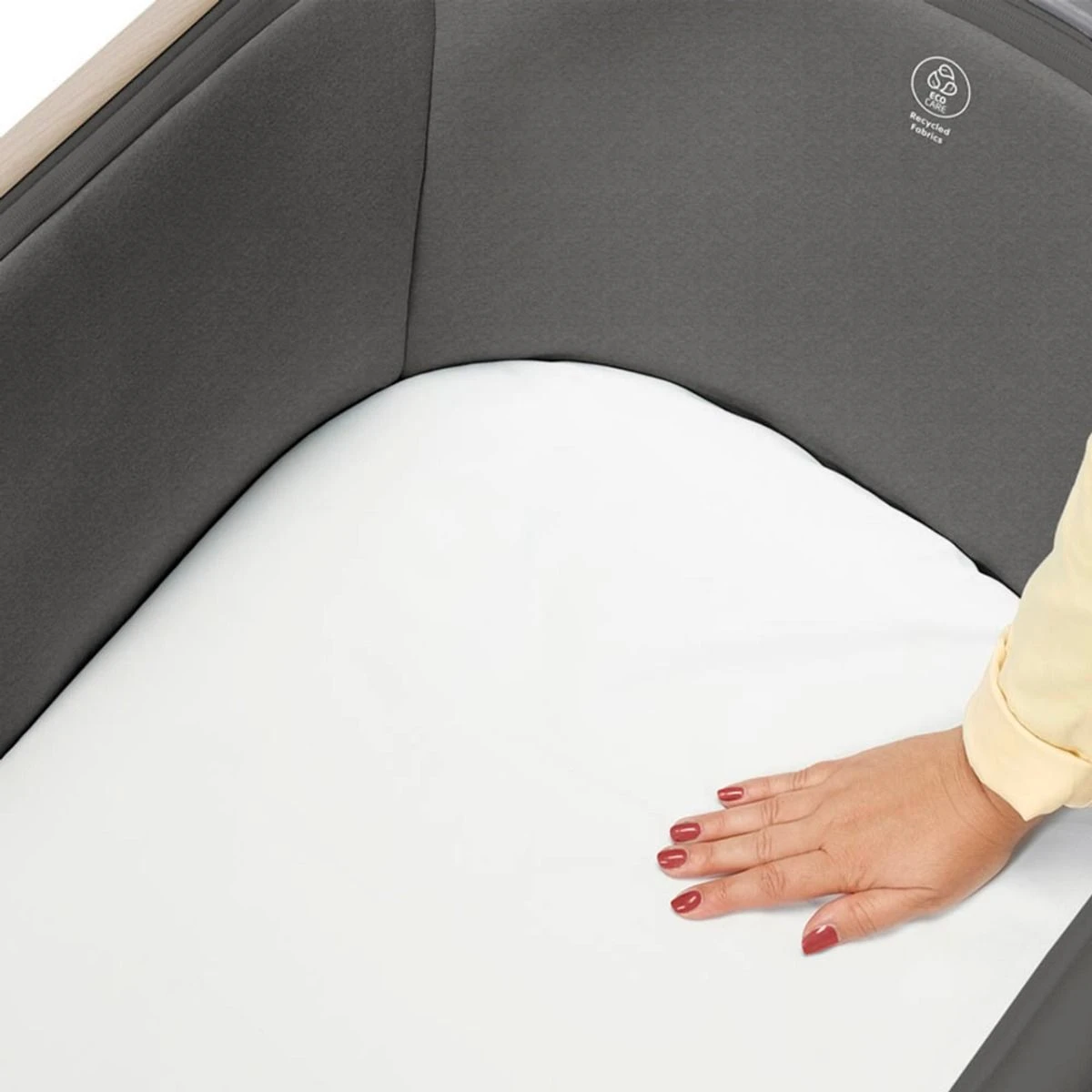 As a parent with a newborn, you’ll sleep extra-soundly knowing your baby is safely sleeping in comfort and within arm’s reach. The Iora is an elegant, stylish, adjustable co-sleeper with the most comfortable mattress you or your baby could dream of. Featuring an easy slide function, large storage basket, EcoCare 100% recycled fabric, five height options and four incline positions, the levels of comfort have been raised with the Iora Co-sleeper.