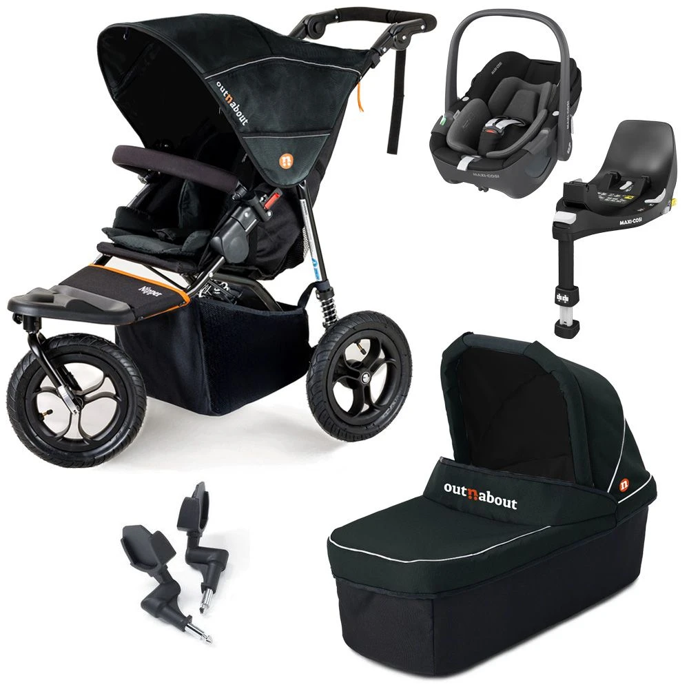 Out ‘n’ About Nipper V5 Single Travel System With Maxi-Cosi Pebble 360 + Rotating Base – Forest Black