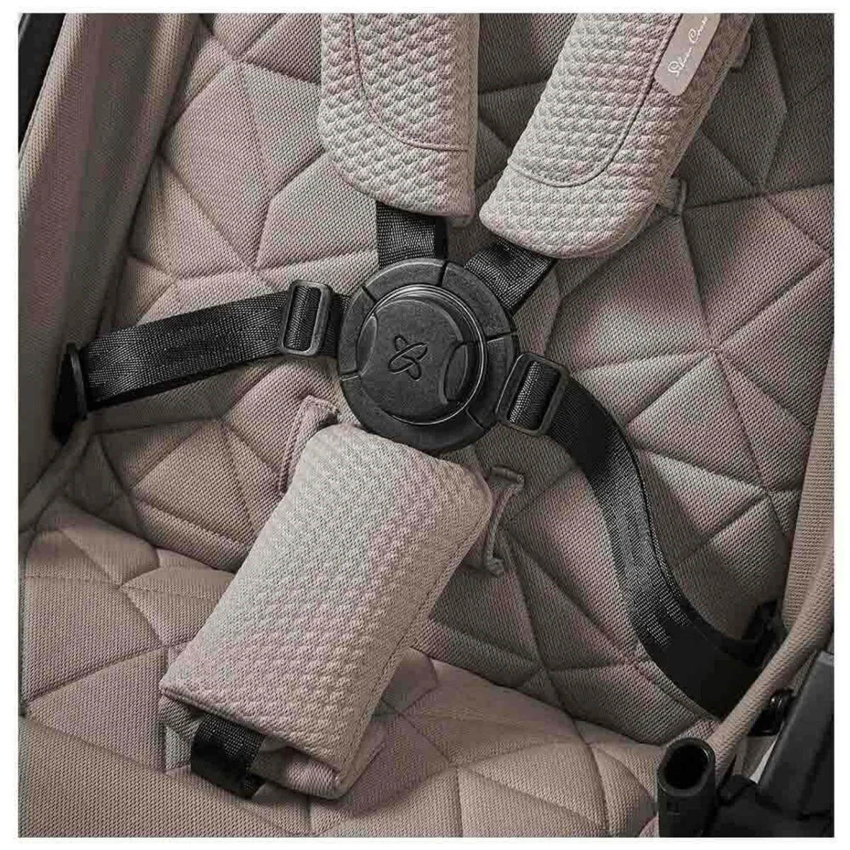 The Clic pushchair features a unique quilted seat design and 5-point safety harness with co-ordinated chest and harness pads. A soft-cushioned leatherette bumper bar protects your little one from bumps in the road, while the UPF 50+ hood, sun visor and ventilation panel keeps them cool on warmer strolls.