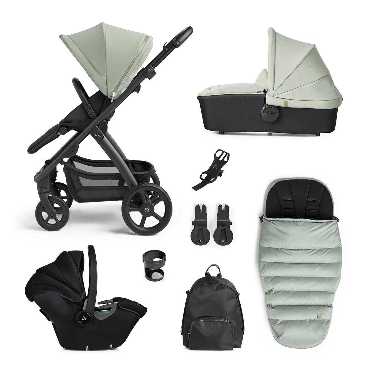 Silver Cross Tide 3-in-1 Pram + Accessory Pack + Dream I-Size Car Seat – Sage/Black