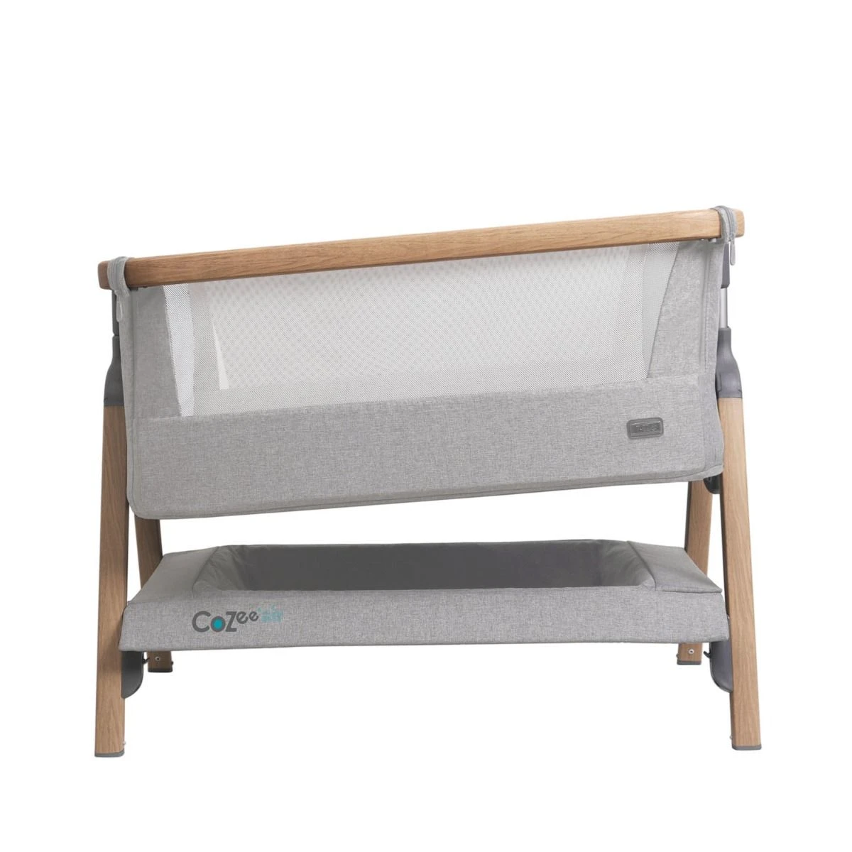 The CoZee Air beside crib in oak and charcoal offers all the benefits of the classic CoZee bedside crib. This superior model comes complete with rocking bars and castors and with the addition of a deluxe airflow mattress and ventilation panels